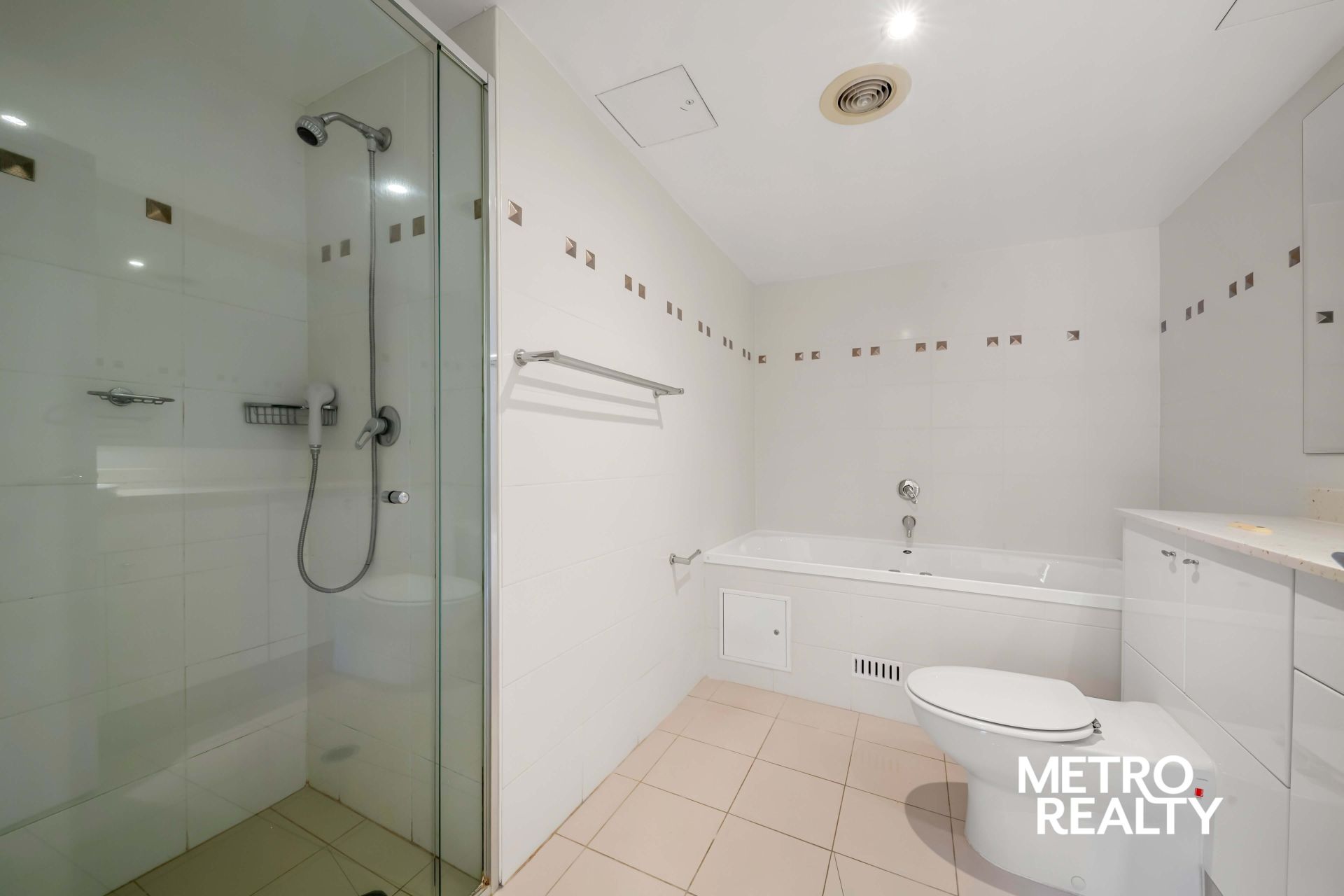 – Fully tiled bathroom, master featuring a separate bath and a shower